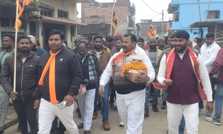 नरकटहा एवं ब्रह्मपुर पहुंचा अयोध्या से आया कलश ।