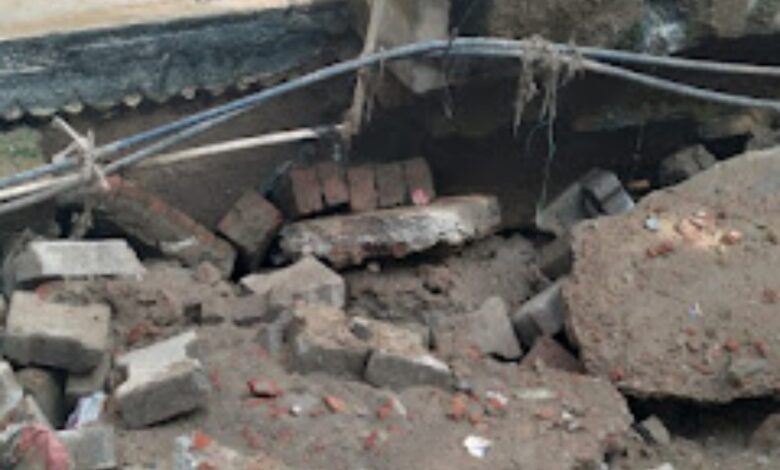 सीवर निर्माण में लापरवाही से घर गिरने के कगार पर