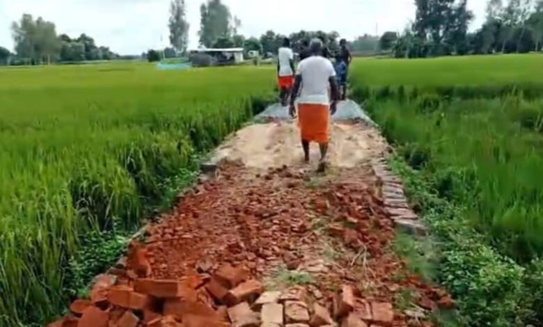 मठिया ईदू हो रहा था सीसी सड़क निर्माण ग्रामीणों के विरोध के बाद,पहुँची पुलिस ।