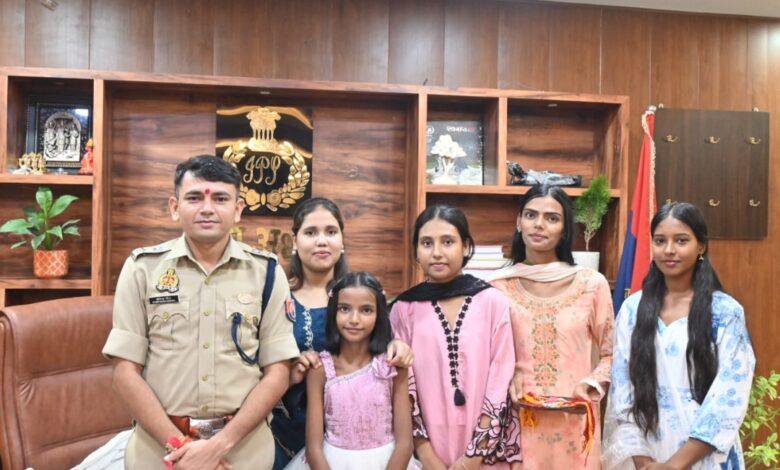 एसपी सोमेंद्र मीना को छात्राओं ने बांधी राखी ‘ ।