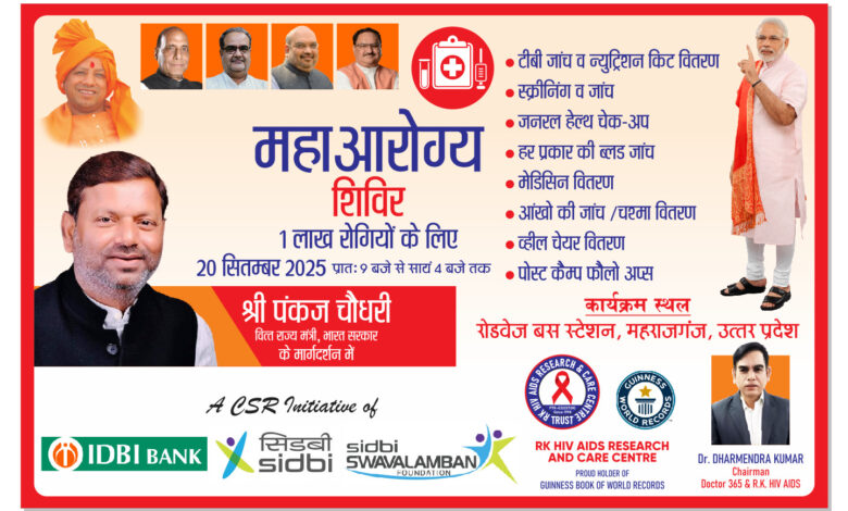 महराजगंज में 20 सितम्बर को लगेगा महाआरोग्य शिविर, 1 लाख रोगियों को मिलेगा लाभ