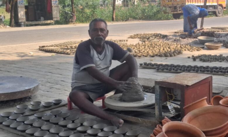 जिसकों देखते हुए गांव में अब कुम्हारों के चाक भी गुलजार हो गए हैं। बृजमनगंज के धानी रोड पर बसहवा में स्थित कुम्हार टोला निवासी रामवृक्ष प्रजापति,योगमति प्रजापति, सूर्यभान प्रजापति पुस्तैनी कला को आगे बढ़ाते हुए खुद चाक पर दीये व मिट्टी के बर्तन बना कर दीपावली की तैयारी में जुट गए हैं । सब के साथ मिल कर दीपावली के लिए मिट्टी के दीये,बर्तन व खिलौने तैयार कर रहे हैं। कुम्हार सूर्यभान ने बताया तीन पीढि़यों से दीये बनाने का धंधा किया जाता है। सभी स्वजन अपना भरण पोषण कुम्हारी कला से ही करते हैं। योगमति प्रजापति ने बताया कि गांव- गांव जा कर मिट्टी तराश कर लाते हैं। परिवार के साथ घर पर दीये व अन्य सामान तैयार करती हूं। दीपावली में दीये, बर्तन व खिलौनों से हुए आमदनी से पूरे वर्ष का खर्चा चलाना पड़ता है। अब मात्र कुछ गिने चुने पर्व पर ही लोगों को हम कुम्हारों की याद आती है।
