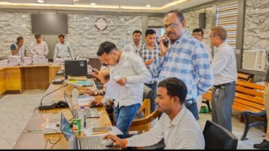 सदर तहसील में ग्राम पंचायत की मतगणना डुप्लीकेट मतदाता सूची अपलोड का निरीक्षण करते जिलाधिकारी।