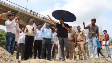 निर्माणाधीन पुल का डीएम ने किया निरीक्षण।