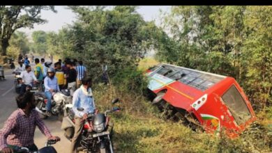 बाइक सवार को बचाने में पलटी रोडवेज की बस,एक घायल