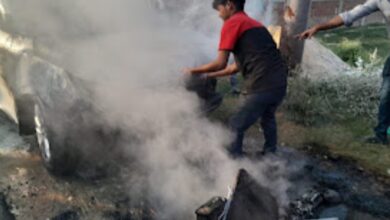 खड़ी महिन्द्रा एसयूवी कार धू-धू कर जली