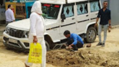 एसडीएम की गाड़ी फसी अमृत योजना के गड्ढे में