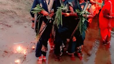 व्रती महिलाओं ने डूबते हुए सूर्य को दिया अर्घ्य